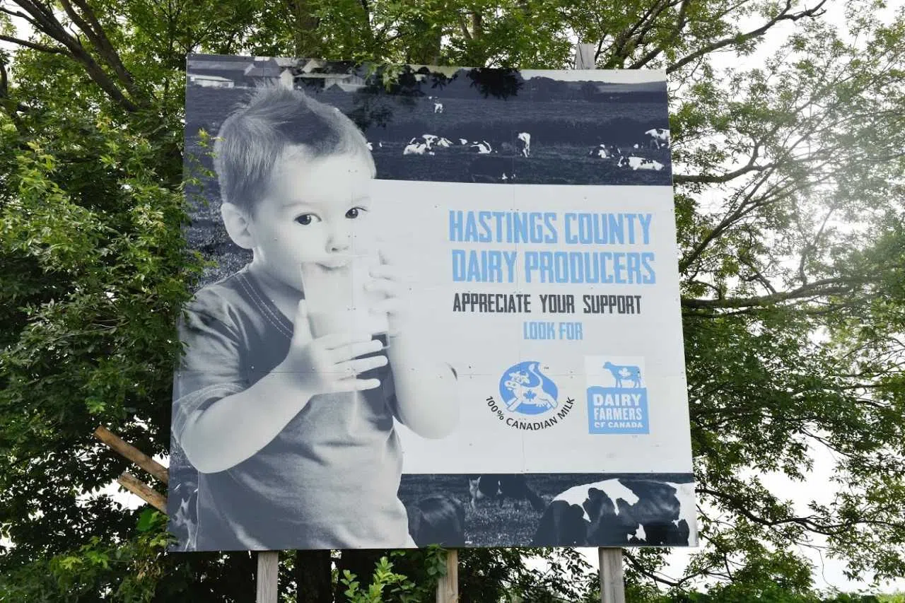 Local dairy farmers want everyone to know they appreciate your support. The Hastings County Dairy Producers have installed a sign at the Donnan Family farm thanking people for buying their products. Mike Bossio, MP for Hastings-Lennox and Addington was on hand for the unveiling ceremony. He says showing appreciation is the right thing to do, and he’s confident Canadians will continue to support supply management.