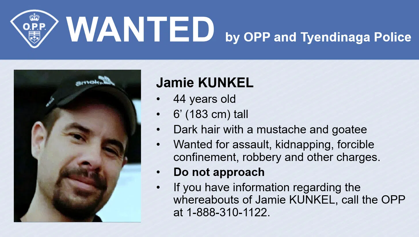 An arrest warrant has also been issued for Jamie Kunkel, age 44 of Tyendinaga Mohawk Territory for the charges of: