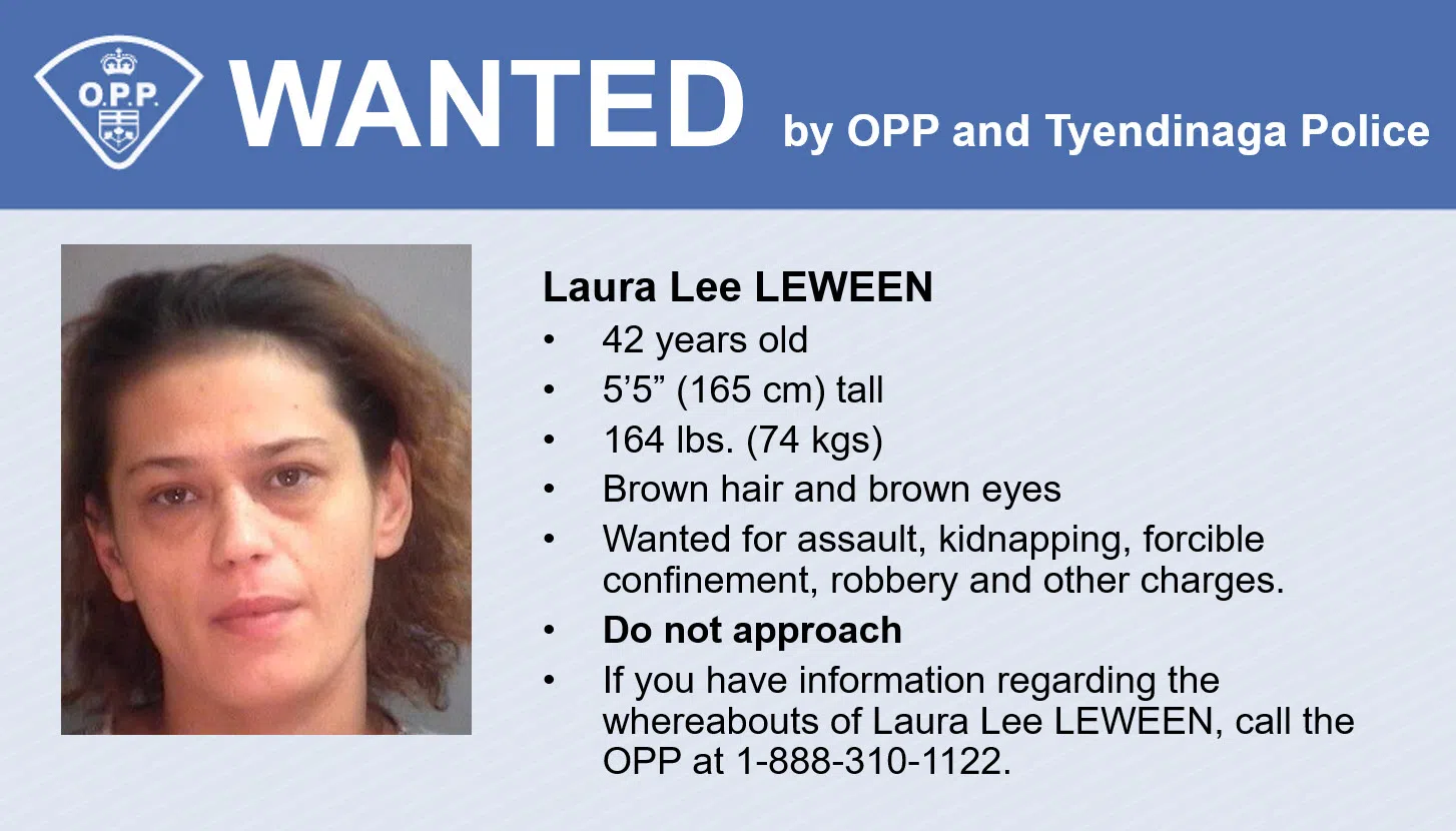 Arrest warrants have been issued for Patrick Lennox, age 37 of Napanee, Laura Lee Leween, age 42 of Tyendinaga Mohawk Territory and Ashley Cummings, age 36 of Tyendinaga Mohawk Territory for charges of: