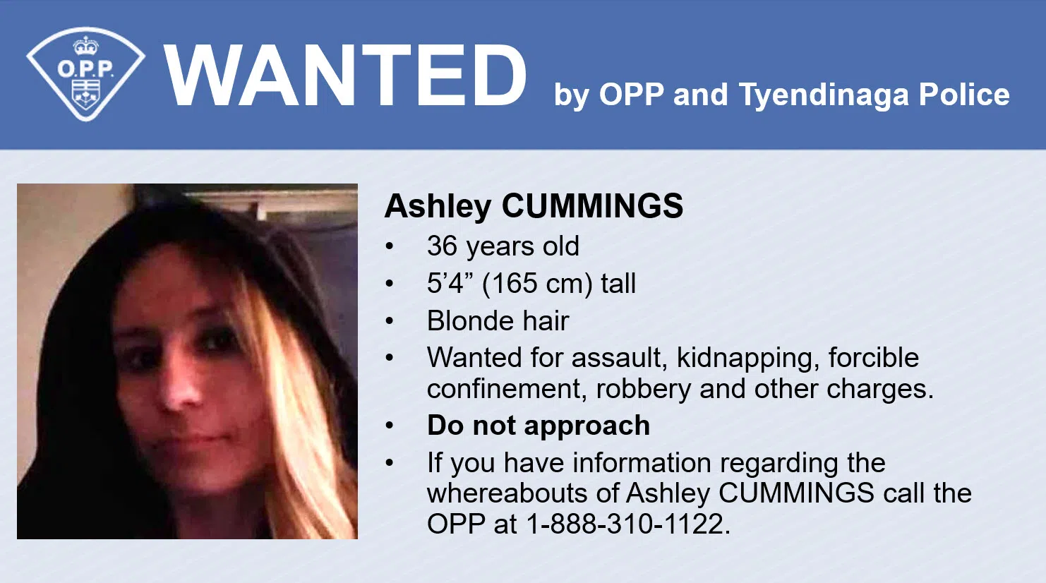 If you see these individuals, or have any information on there whereabouts, do not approach them. Call the OPP at 1-888-310-1122. If you want to remain anonymous, call Crime Stoppers at 1-800-222-8477.