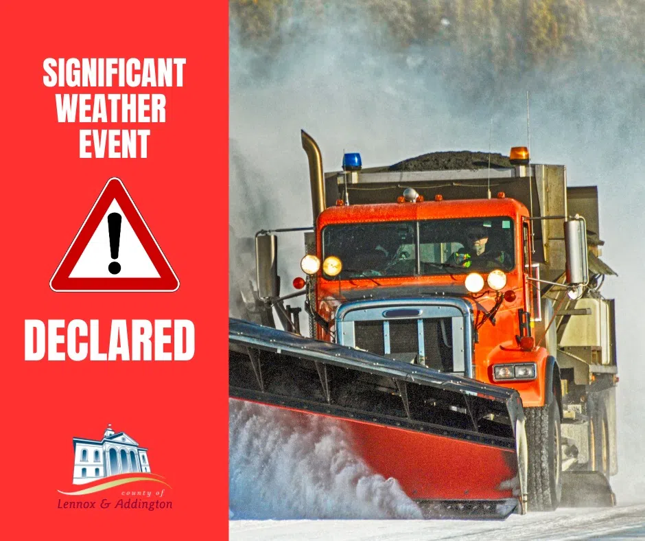 The County of Lennox and Addington has Declared a Significant Weather Event, effective February 12, 2025, at 2:00 pm.