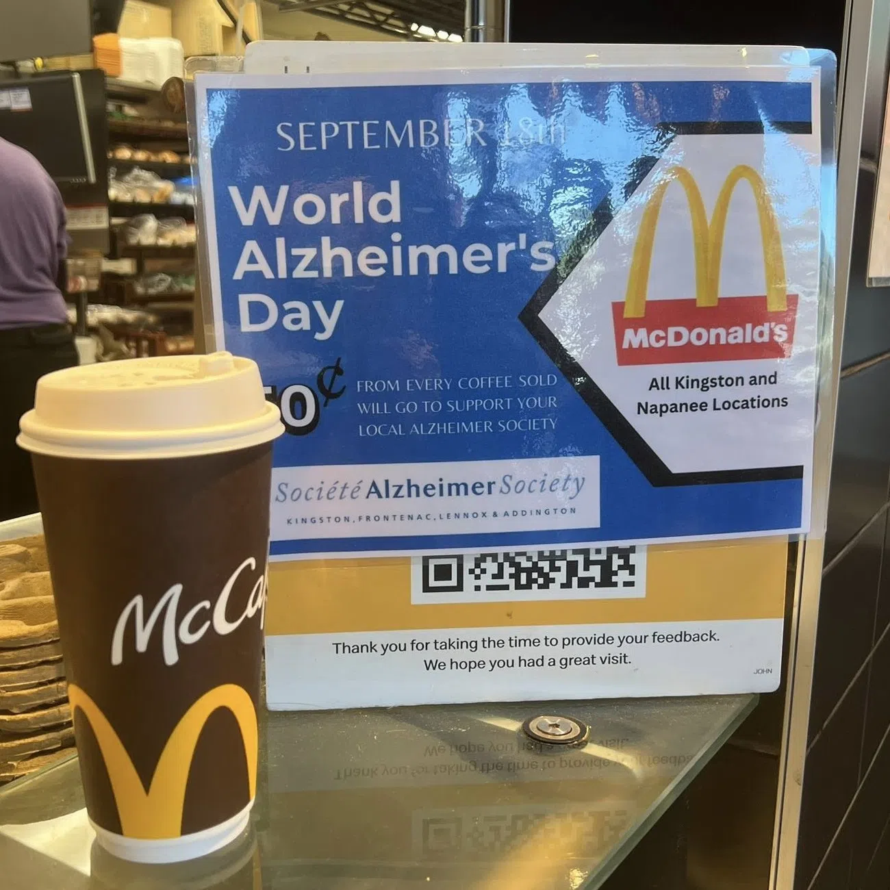 On Thursday, Sept. 18, McDonald’s locations in Napanee and Kingston donated 50 cents from every medium, large, and extra-large hot beverage sold to the Alzheimer Society of Kingston, Frontenac, Lennox and Addington.